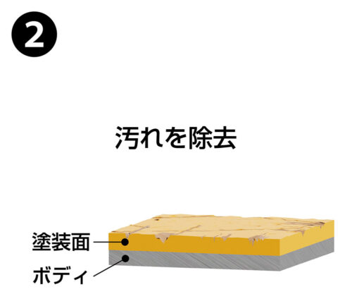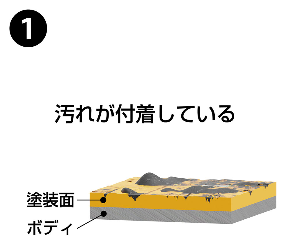 触媒作用により脱水縮合反応ののち3次元架橋による高硬度かつガラスのようなクリアな被膜を形成し、塗装劣化の原因となる汚染物質や紫外線などの外的要因による過酷な環境にも優れた耐久性を発揮します。