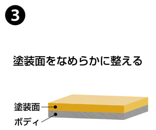 フッ素系被膜+ダブルのガラス系ハードコート被膜という最強の3層構造により、365よりもさらに高い耐久力と深い艶、水弾きを実現。