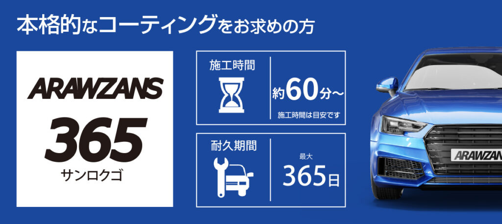 ARAWZANSは、コーティング剤とポリッシャーの組み合わせによる相乗効果で抜群の艶と輝き、そして驚異の水弾きを実現しました。